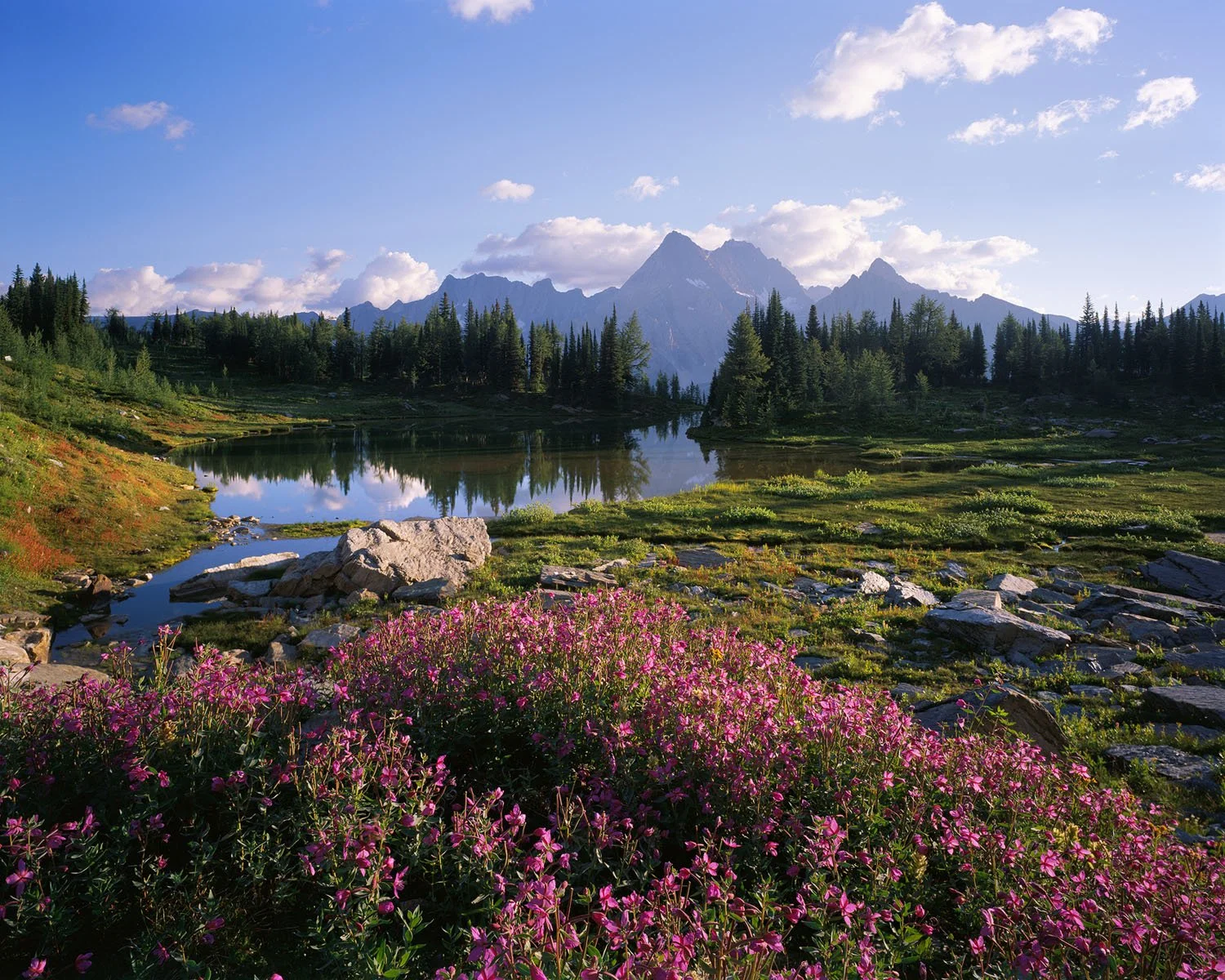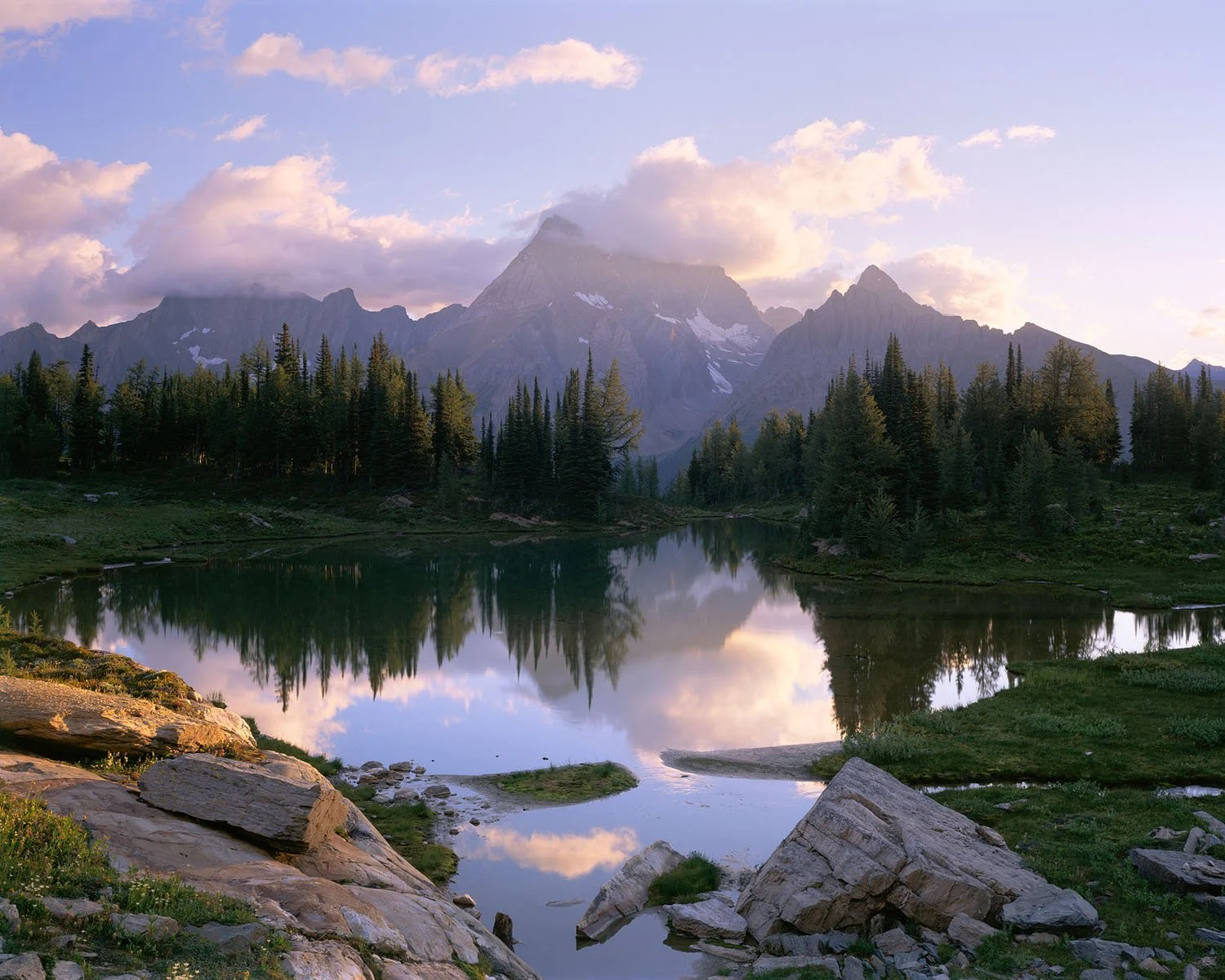 “Jumbo Flowers” - Purple flowers bloom at sunrise near a small alpine lake. Purcell Mountains, Canada - August 2024. E100 4x5, 75mm lens, 1/8th second at f22, 812 filter. Prints available.