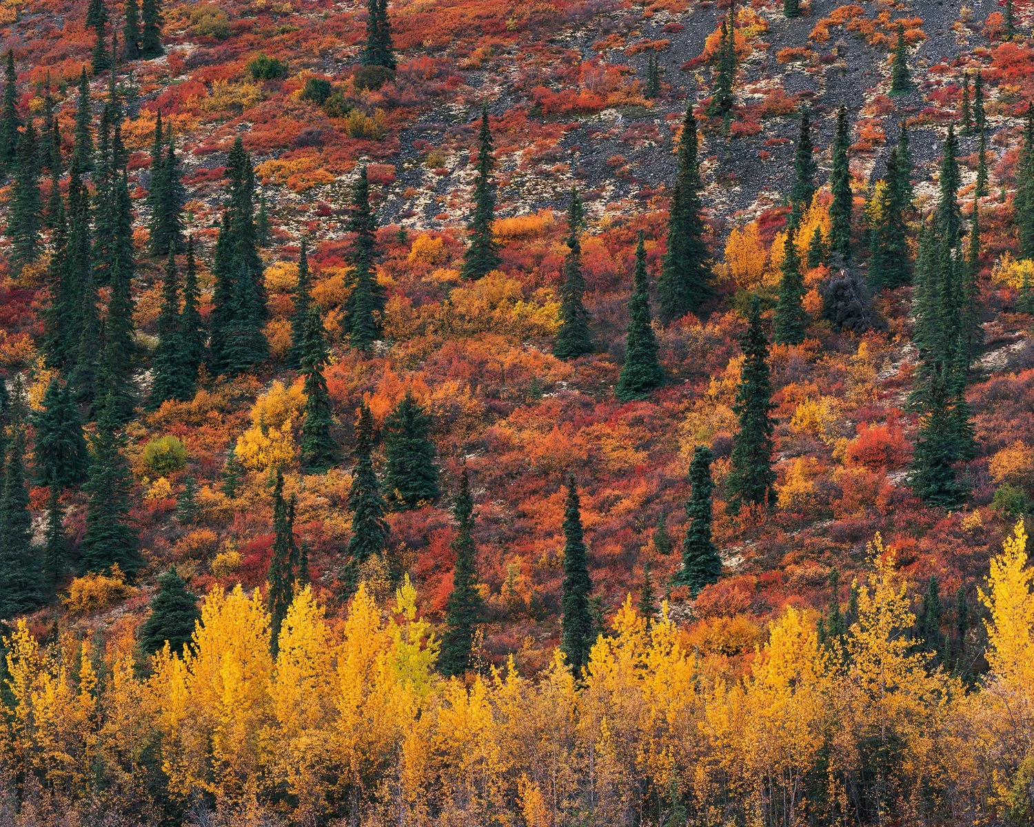 “Yukon Spruce” - Spruce stand among a medley of autumn colors in the taiga. Tombstone Provincial Park, Yukon - September 2024. E100 4x5, 125mm lens, 1/2 second at f32, 812 filter. Prints available.