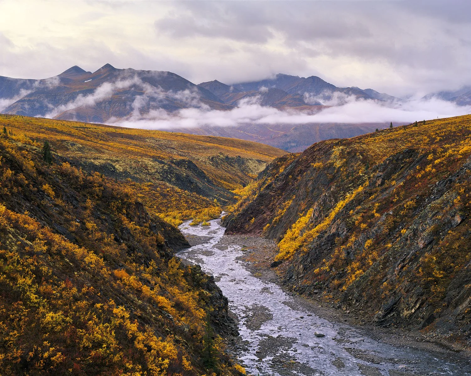 “Tombstone Canyon” - A creek cuts through a canyon lined with autumn foliage. Tombstone Territorial Park, Yukon - September 2024. E100 4x5, 200mm lens, 1/4 second at f22, 812 filter and 1 stop soft GND. Prints available.