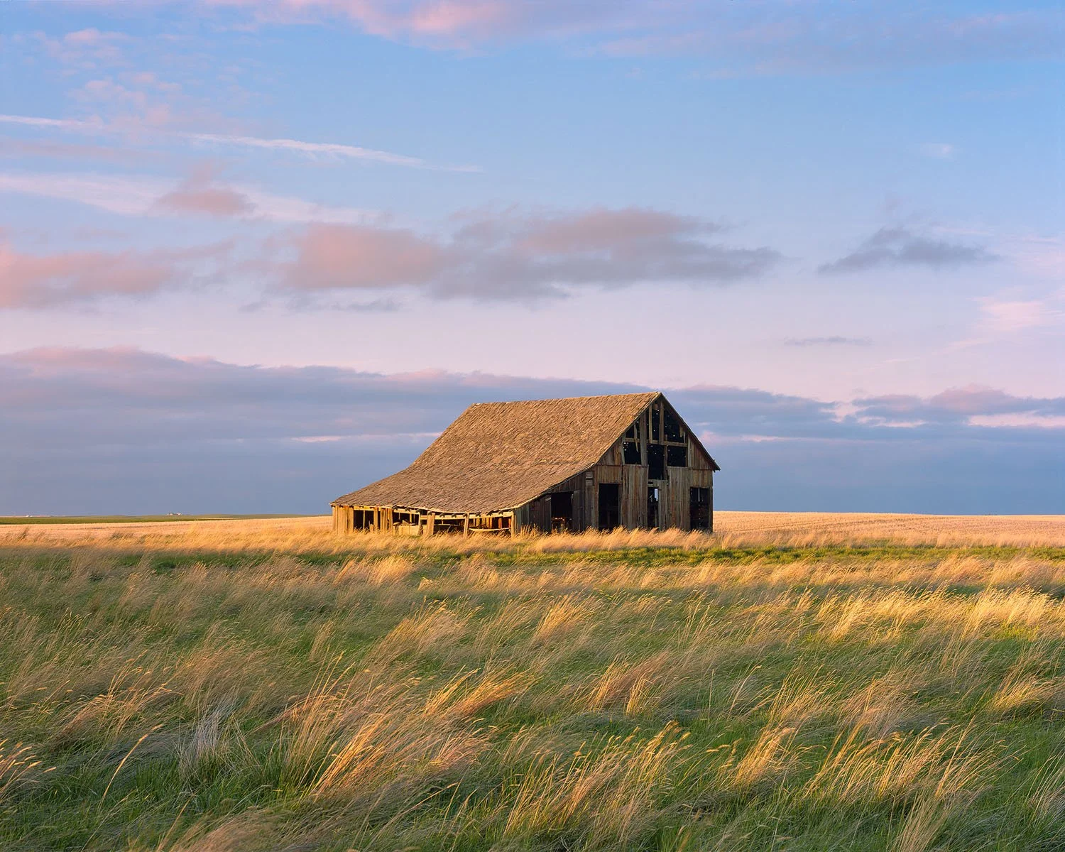 “Prairie Grass Barn” - A barn and tall grasses catch the last light of the day. Western Montana - May 2025. Portra 160 4×5, 200mm lens, ¼ second at f22, no filters.