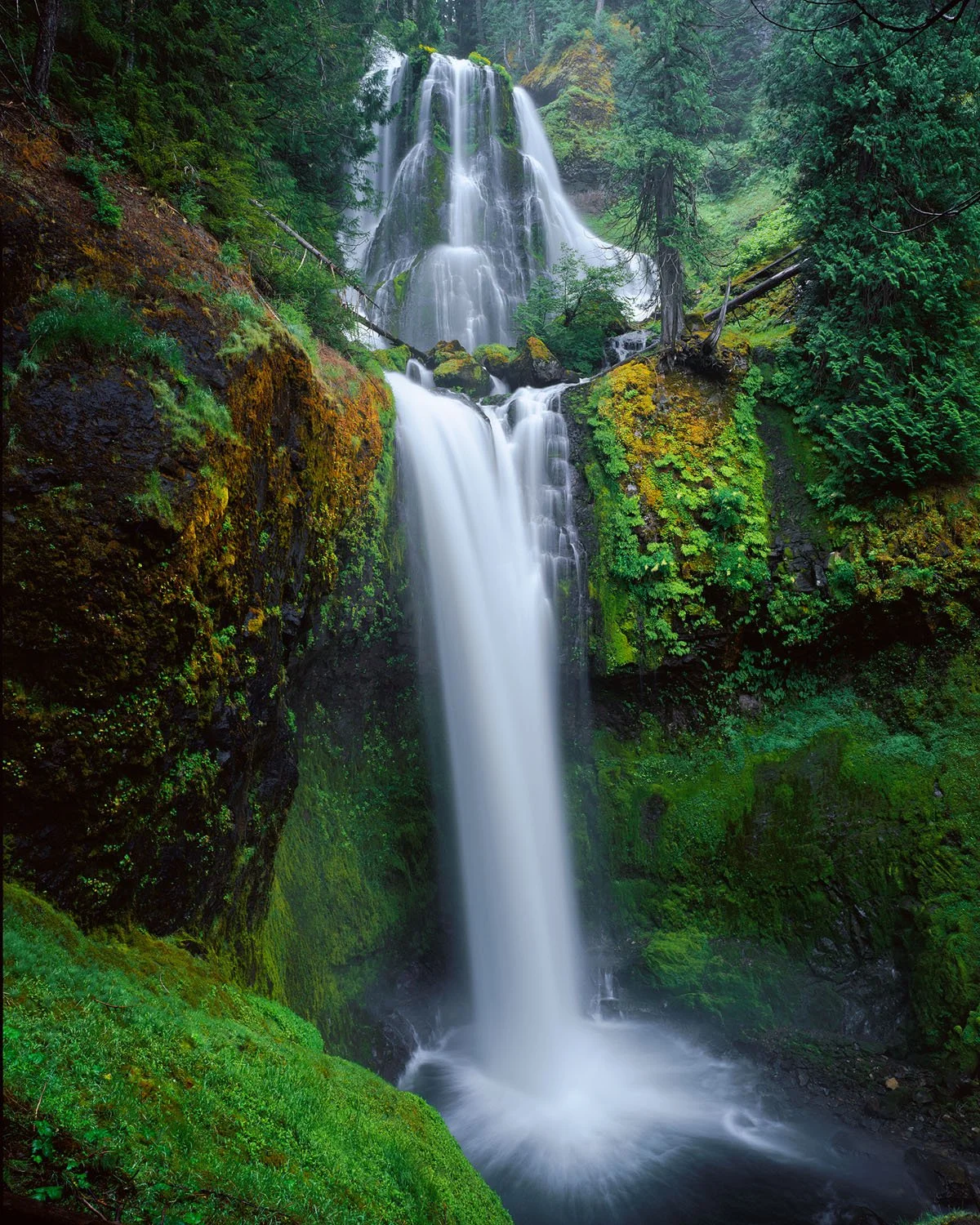 “Fall Creek Falls” - A powerful waterfall flows through a lush green canyon. Washington - June 2025. E100 4×5, 90mm lens, 1 second at f22, polarizing filter.