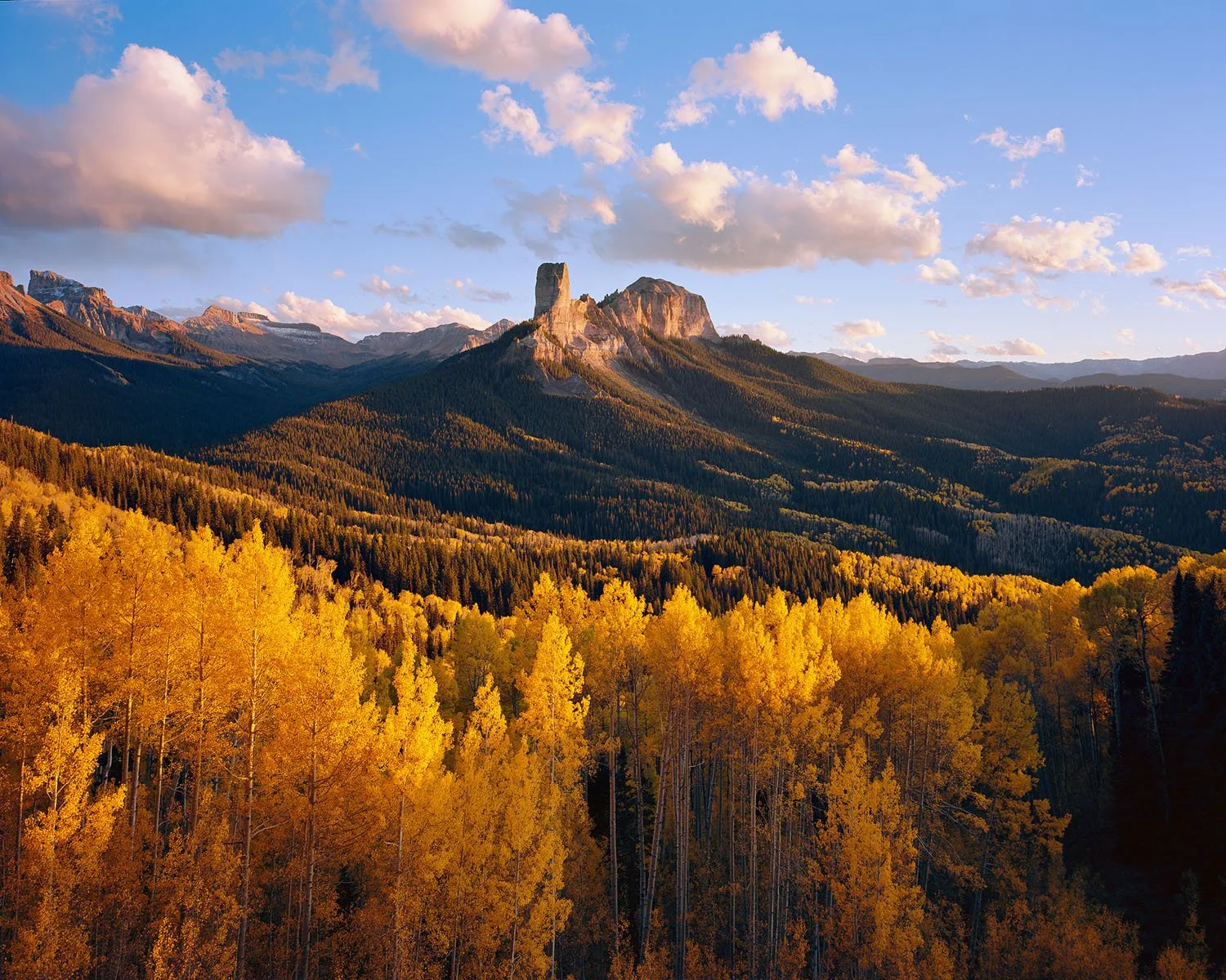 “Courthouse Sunset” - Sunset over The Courthouse from a high viewpoint with golden autumn aspen in the foreground. San Juan Mountains, Colorado - October 2025. Ektar 100 4x5, 90mm lens, 1/4 second at f22, no filters. Prints available here.